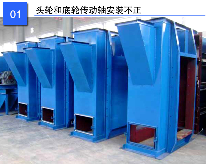主要體現(xiàn)在以下幾個方面:一是頭輪和底輪的傳動軸在同一垂直平面內(nèi)且不平行;二是兩傳動軸都安裝在水平位置且不在同一垂直平面內(nèi);三是兩傳動軸平行,在同一垂直平面內(nèi)且不水平。這時,料斗帶跑偏,易引起料斗與機筒的撞擊、料斗帶的撕裂。