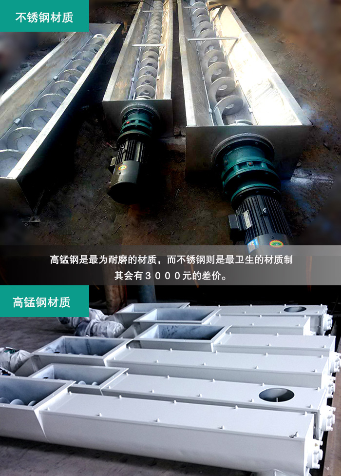 其產(chǎn)品來(lái)自于新鄉(xiāng)大漢機(jī)械有限公司,新鄉(xiāng)大漢的產(chǎn)品在生產(chǎn)時(shí)使用了,市場(chǎng)上好的高錳鋼和不銹鋼材質(zhì)而成,高錳鋼是為耐磨的材質(zhì),而不銹鋼則是衛(wèi)生的材質(zhì)制。運(yùn)用好材質(zhì)才會(huì)有好質(zhì)量。與此同時(shí)GL型螺旋輸送機(jī)就會(huì)有3000元的差價(jià)。