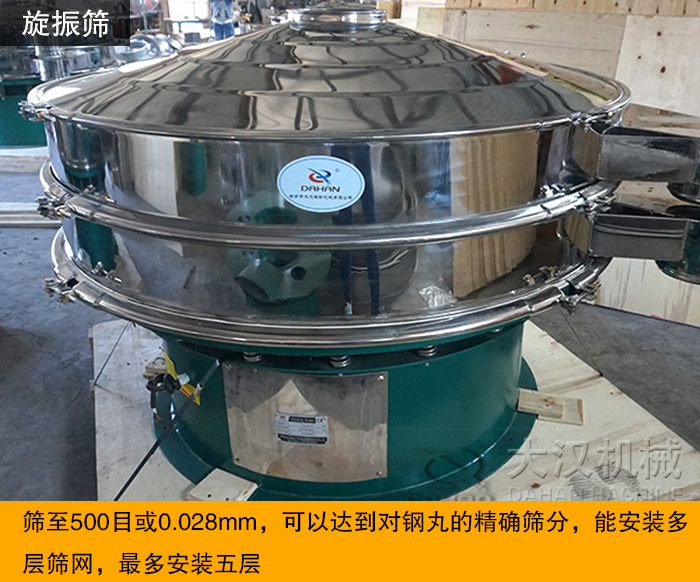 旋振篩篩網(wǎng)采用獨特的設(shè)計,網(wǎng)孔不堵塞,粉末不飛揚,可以篩至500目或0.028mm。可以達(dá)到對鋼丸的篩分。